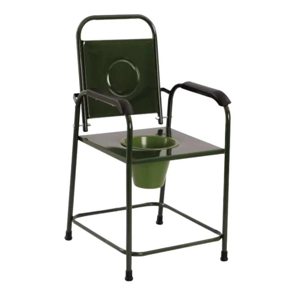 A Commode Chair is a portable toilet chair designed for patients who cannot easily access a bathroom. It includes: